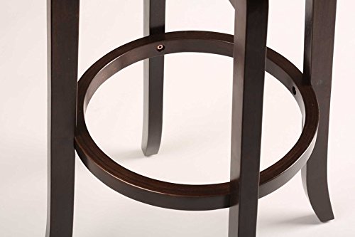 The Copenhagen swivel bar stool is comfortable and classic. Made of solid hardwood with a beautiful espresso finish, the Copenhagen boasts an elegantly arched back and a 360 degree swivel seat covered in brown faux leather. Assembly required.