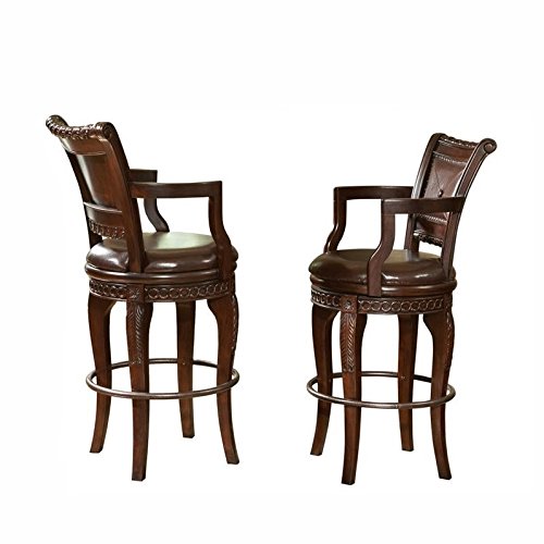 The Antoinette Swivel Bar Height Chairs are beautifully crafted and are loaded with features and details. The Antoinette Swivel Bar Height Chairs feature detailed hand carvings, bicast leather upholstery, and cherry and mahogany burl inlays in the ch...