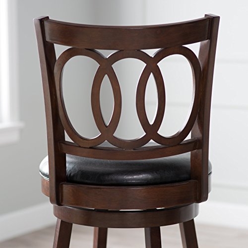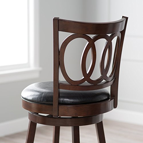 Complement any tall bar or bistro table with the Belham Living Woodward Extra-Tall Swivel Bar stool. Made for taller settings, this stool offers a charming transitional style with a circlet back and sturdy rubberwood construction. A warm cherry finis...