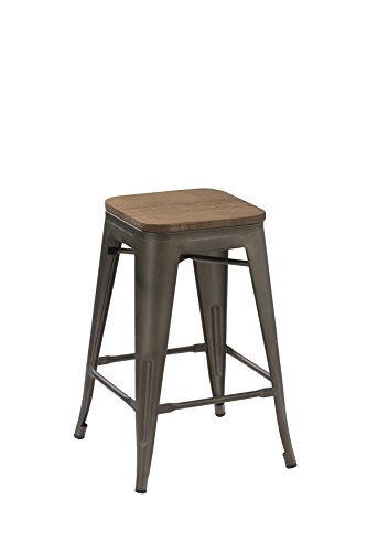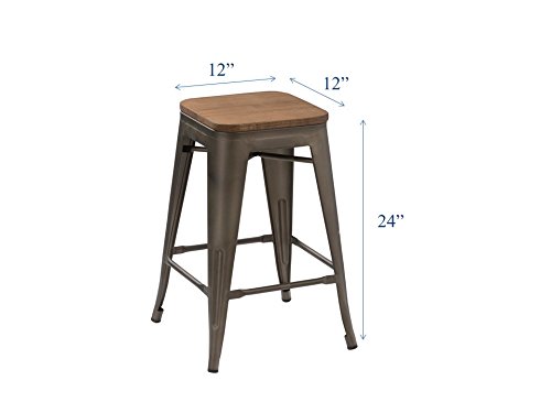 Btexpert 24-Inch Industrial Antique Copper Distressed Metal Stackable Tabouret Dining Modern Steel Bar Stools Handmade Wood Top Seat (Set Of Two Bar Stools) with Btexpert nearby Barrington