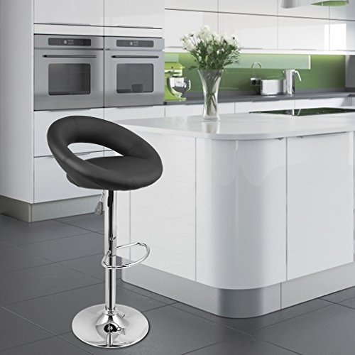 - CONTEMPORARY STYLE: upholstered in modern black faux leather and padded with high resilience foam, this stool with an ergonomically conceived arched backrest will spruce up your bar or kitchen area