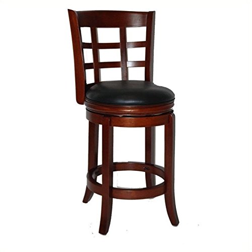 The Boraam Industries 41224 24-Inch Kyoto Swivel Stool in Cherry finish features. Solid hardwood construction. Black faux leather seat over high-density foam. Durable ball-bearing for full, 360 degree swivel. Flared legs and footrest provide comfort ...