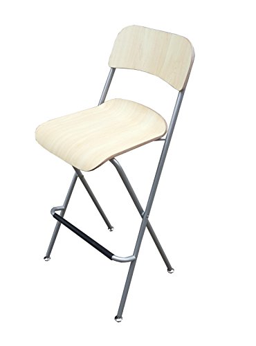 - This listing is for ONE bar chair! Folding Bar Chair is popular for bars, stores and households. Seating and backrest are made of wood, folding chair frame is made with metal tubing. Metal is powder coated silver. Wood clear coated. Footrest is made of metal tubing with rubber grip.
