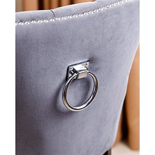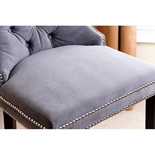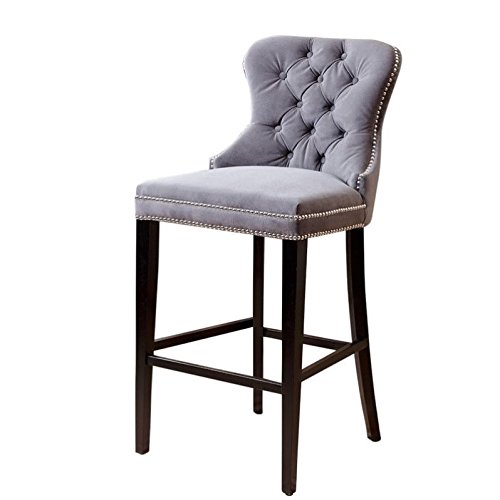 Features: Solid birch wood legs; Silver nailhead trimmings; Silver Handle on back of Bar Stool; Grey Hardwood Frame; Birch Wood Legs; Velvet Polyester Espresso 21 inches wide x 23 inches deep x 45 inches high Seat Height: 30 inches high. Specificatio...