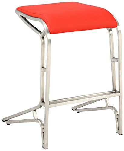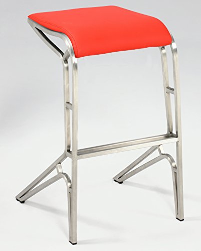 Backless contemporary stool with beautiful brushed stainless steel legs, modern feet and frame. Upholstered in Red PU. Available in Bar height or Counter stool height. Also available in Black PU.