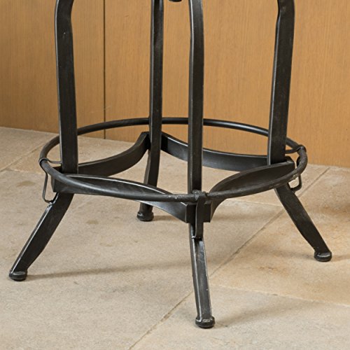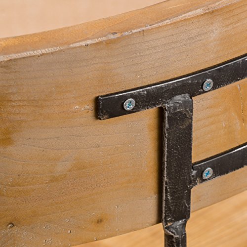 Includes: One (1) Barstool Material: Fir Wood Leg Material: Iron Color: Naturally Antique Wood Finish Leg Color: Antique Black Brush Silver Some Assembly Required Dimensions: 18.50"D x 22.75"W x 39.00"H