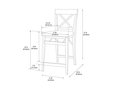 - Seat dimensions: 25" x 17" x 16", 24" Seat Height