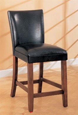 Set of two 29"H barstools feature Black bycast leather seats. These Black leather barstools that are very sleek and sophisticated. This set has clean style and gentle curves with contemporary look and offers a modern approach to dining. Dimension: ...