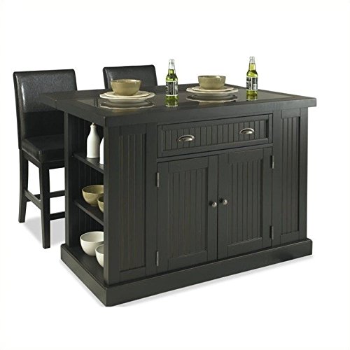 Home Styles 5033-949 Nantucket Kitchen Island And Stools, Distressed Black Finish with Home Styles nearby Plainview