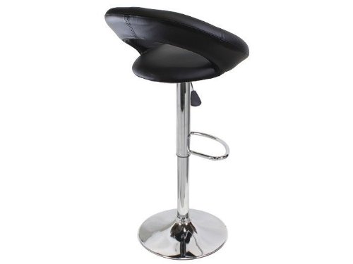 - Stylish Modern design Synthetic leather Seat Swivels 360 degrees Pneumatic adjustable height Chrome base 15 inch Rubber ring bottom to prevent floor from scratching Sold in pairs