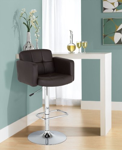 The tufted espresso, faux leather seat and larger chrome base of this adjustable back upholstered bar stool combine to create a fantastic, contemporary home accent piece. The overall height of this functional and comfortable larger stool adjusts from...