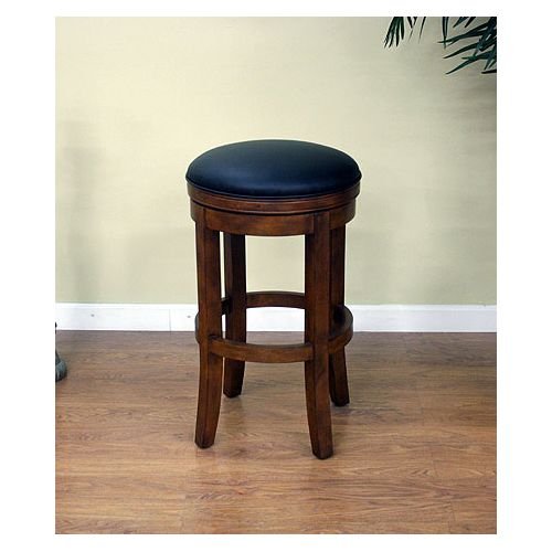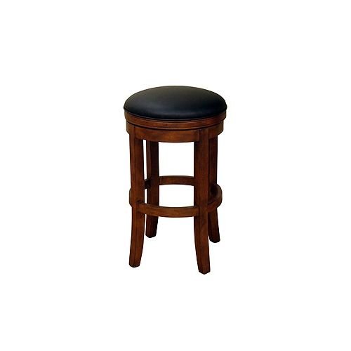 Finished in Amaretto with Black leather, backless stool, fully assembled, full-bearing swivel, 3" Plush Cushion, floor glides, Built Using Mortise and Tenon Construction Principles, 1 year Warranty.