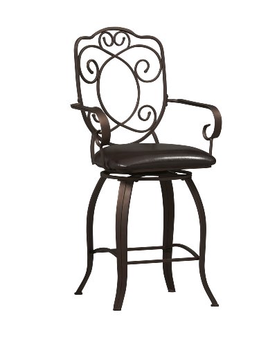 The elegance and unique style of this 24 in. Crested Back Counter Stool will carry throughout your kitchen, dining, or home pub area. Crafted of metal and highlighted with subtle curves, a dist inctive back, and comfortable arm rests, this stool is a...
