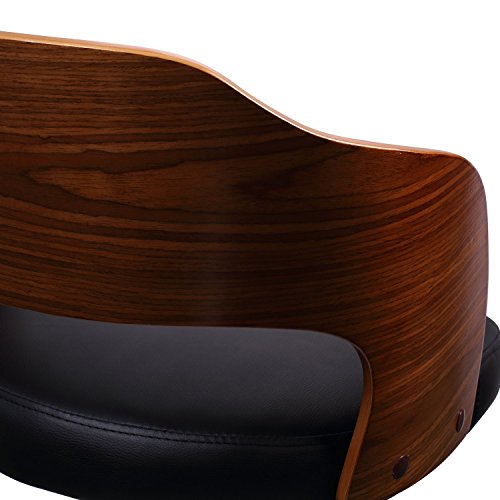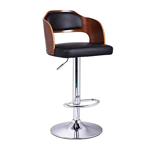 This beautiful bar stool chair is sure to be the envy of all your friends. Sip your drink in style perched on a cushioned, leather-like seat with a trendy, wrap-around back featuring a cut out design walnut-color wood that strikingly offsets the blac...