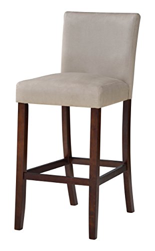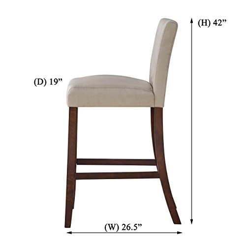 Fill the void in your living room, dining room, or home bar and encourage good conversation with company by adding these tasteful and classic upholstered accent bar stools in classic beige microfiber with rich, brown tapered legs. They fit wonderfull...