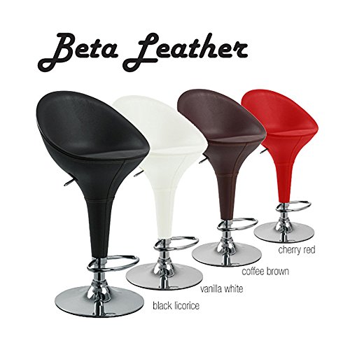 Contemporary style with a retro flair! This Beta "Leather" adjustable height barstool is now being offered in 4 fabulous colors! Get just the right shade to match that funky lamp or your sleek kitchen or bar. The base and the foot rest are made from ...