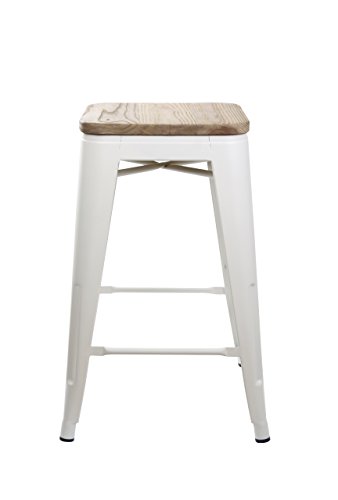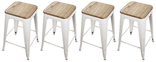 if you like with Gia Cream White 24 Metal Stool With Wooden Seat(Set Of 4) - Counter Height Square Backless - Tolix Style - Weight Capacity Of 300+ Pounds - Ready To Use - Extra Durable And Stackable Buy it here