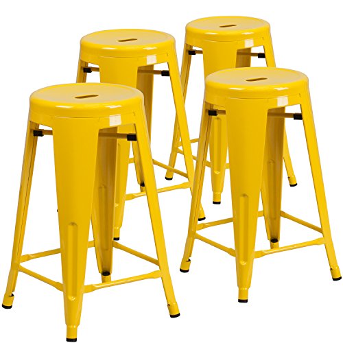 if you like with Flash Furniture 4 Pk. 24 High Backless Yellow Metal Indoor-Outdoor Counter Height Stool With Round Seat Buy it here