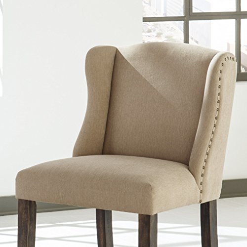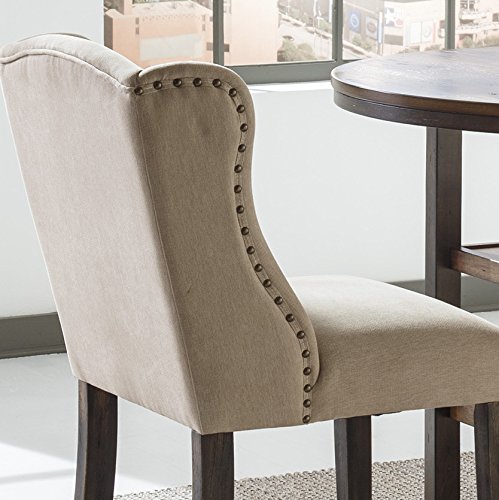 - It features bronze nail accented traditional wing design that is upholstered in a textured taupy-gray (beige) color fabric.