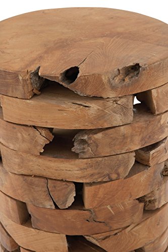 18" Organic Inspired Inlaid Rustic Teak Wood Slice Cylinder Stool, smooth natural surface, flat bottom base. This product is manufactured in Indonesia.