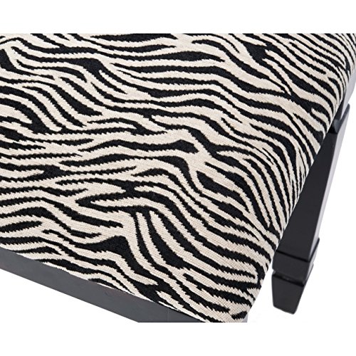 The Safavieh American Home Collection Kakadu Brown Zebra Upholstered Stool is upholstered in black and white faux zebra fabric. Its unique top is paired with classic black legs that give it a one of a kind elegance. Assembly required, this stool meas...