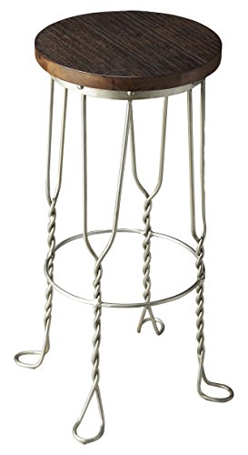 Distressed finished recycled seat. Twisted legs ending with small footprints. Legs conjoined by iron base in antique silver finish. Warranty: one year. Metalworks finish. Made in India. No assembly required. 15 in. Dia. X 28 in. H (15 lbs.)