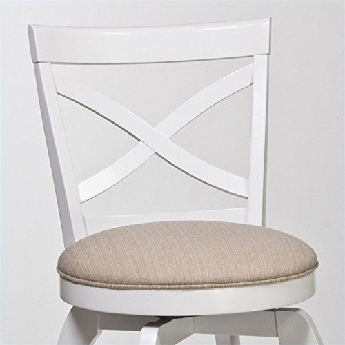 Neutral toned seat cushion. Curving cross-back design and a 360-degree swivel stool. Made from rubber wood. Made in Malaysia. Assembly required. Seat height: 25.25 in.. 17.5 in. W x 21 in. D x 39 in. H (20.3 lbs.). For the lighter and brighter spaces...