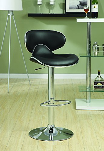 Accent your contemporary bar area with this bar stool. The sleek design features a black leather-like seat with a built in footrest for a modern profile. The shiny chrome base includes a swivel seat and adjustable height lever to raise chair up to 40...