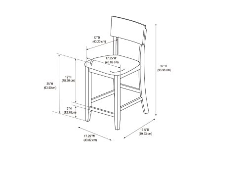 - Stationary seat, 17.25"W x 19.5"D x37"H